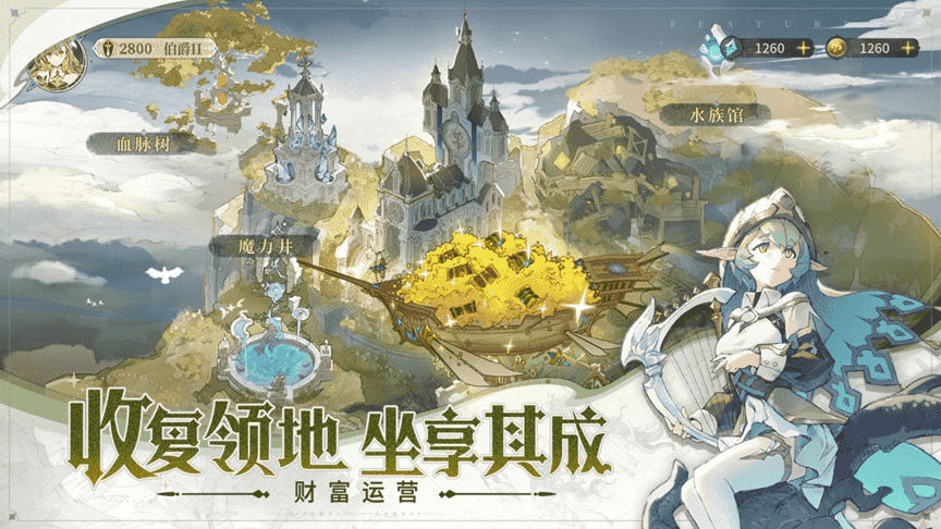 随着冒险推进,,你可以陆续解锁各大王国的资源地块,,,这些地块将为家族庄园带来源源不断的资源助力,,,帮助家族团队升阶成长。。。。据说,,某些地块还是绝佳的钓鱼消遣据点......